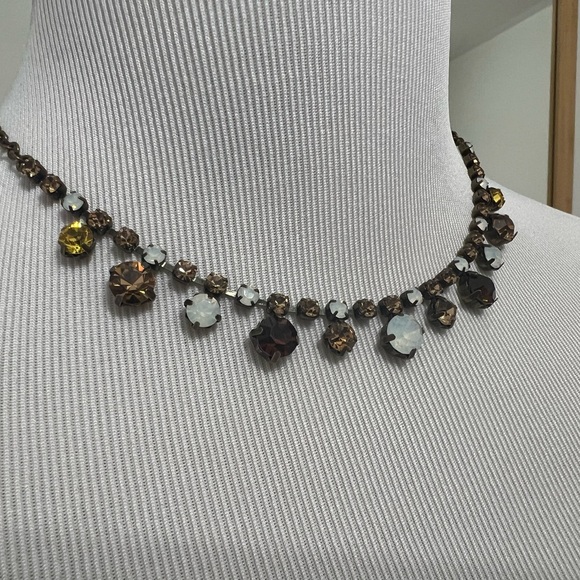 This stunning necklace features a blend of brown, yellow, and white rhinestones, perfect for adding a touch of elegance to any outfit. Ideal for both casual and formal occasions.