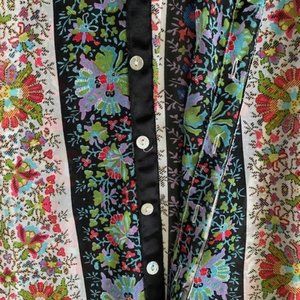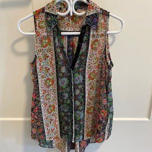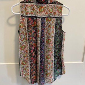 Multi-Coloured Sleeveless Blouse with Collar and Covered Buttons, Size S
