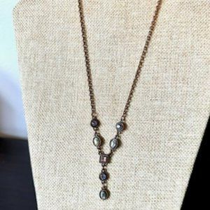 Colorful bezel-set gemstones on a brass chain, drop-style pendant - Vintage