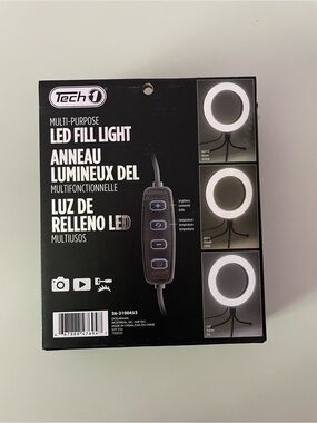 Compact LED ring light with tabletop tripod. Bright even lighting for photos and video. Simple plug-and-play setup. Portable for streaming and content creation.