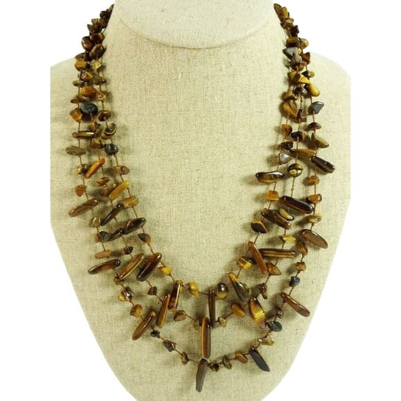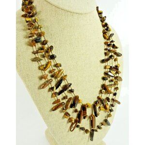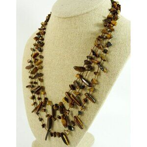 Multi-Strand Tigereye Necklace Triple-Strand Tigerseye Brown Stone 20"