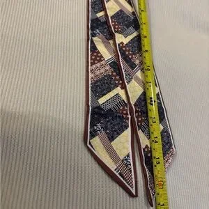 Add a touch of effortless style with this multi-styling patterned fabric strap, designed for everyday versatility. Made from lightweight printed fabric, it features a detailed patchwork-inspired pattern in warm, earthy tones that brings texture and visual interest to any look. Its long, narrow shape makes it easy to tie, wrap, or knot just the way you like.