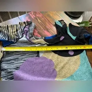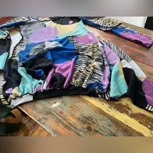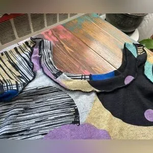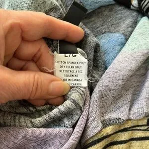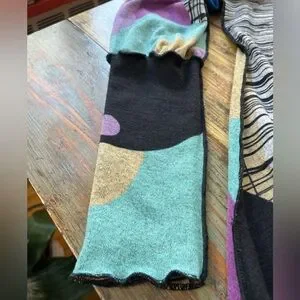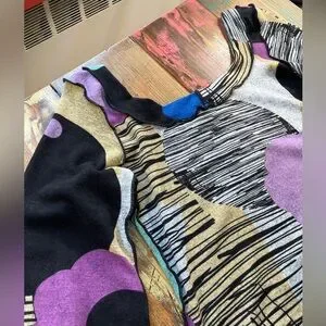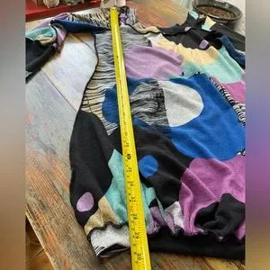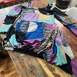 Asymmetrical and Multicolor Abstract Tunic. Can also be used as a dress. Cotton knit (slightly stretchy fabric). It’s a small large size. Like new. No need to dry clean. Machine wash (cold water) and air dry flat.
