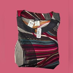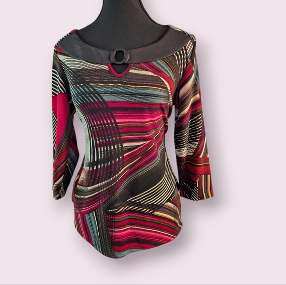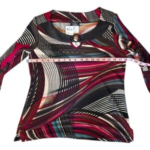 Elevate your style with this vibrant multicolor abstract women's top. Perfect for any occasion, this top features a unique design that stands out. pet free