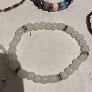 This vibrant multicolor beaded bracelet set adds a touch of elegance to any outfit. Featuring a mix of blue, purple, and white beads, it's perfect for any occasion.