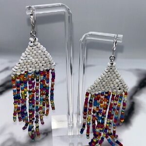 These vibrant multicolor beaded fringe earrings are perfect for adding a playful touch to any outfit. Ideal for casual or festive occasions.