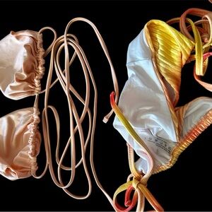 Vibrant multicolor bikini set perfect for summer. Features a stylish design with adjustable ties for a comfortable fit.