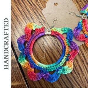 #HandcraftedJewelry #RainbowEarrings #CrochetAccessories #BohoStyle #FestivalJewelry #ColorfulStyle