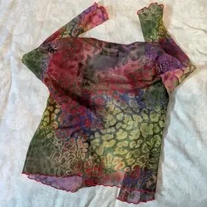 Vibrant multicolor one size cardigan. Round neckline with button-front closure. Lightweight textured fabric. Bright, blended colors throughout. Great statement layering piece.