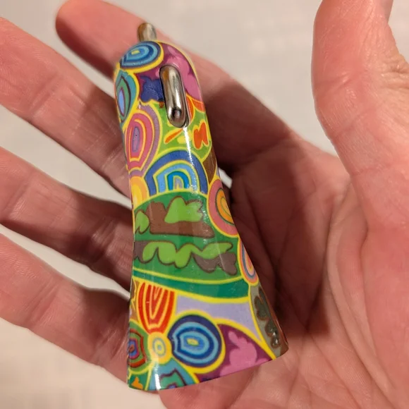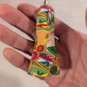 Brighten up your car with this multicolored car charger. Perfect for keeping your devices charged on the go. Features a mix of bright colors including yellow, green, blue, and purple.