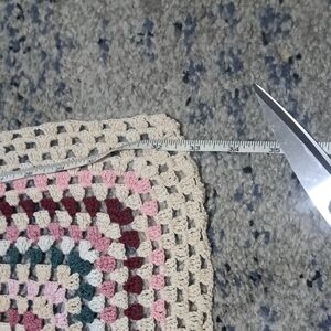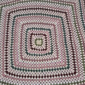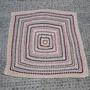 Enhance your dining experience with this beautiful multicolor crochet table linen. Its intricate design features shades of pink, cream, and green, adding a touch of elegance to any table setting.