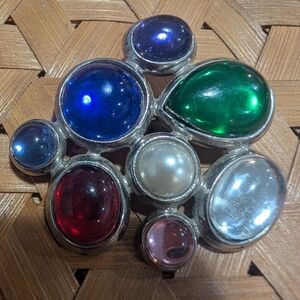 Add a touch of elegance with this stunning multicolor gemstone brooch. Featuring vibrant blue, green, red, and silver tones, this piece is perfect for any occasion.