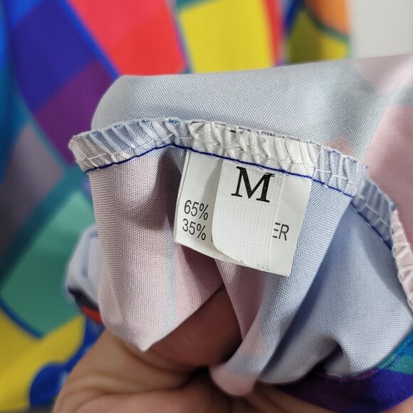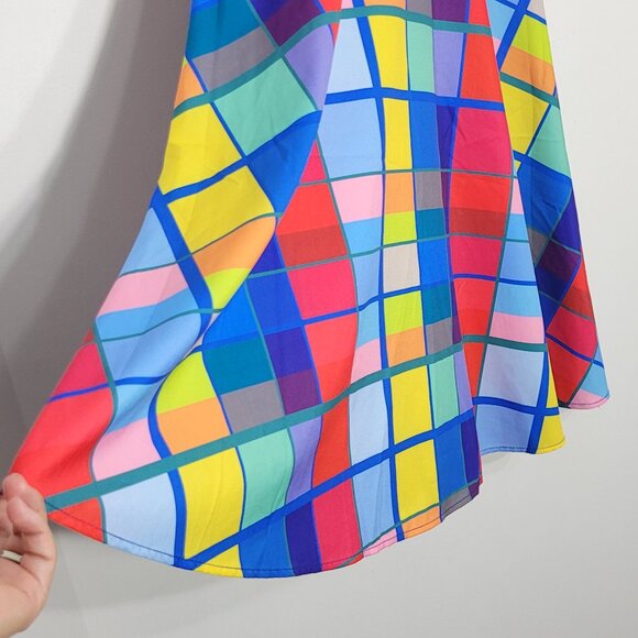 Multicolor Geometric Square Mixed Pattern Cotton Blend Sleeveless A-Line Dress Size Medium