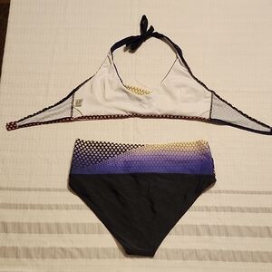 Stylish multicolor halter bikini set with a unique pattern. Perfect for a day at the beach or pool.