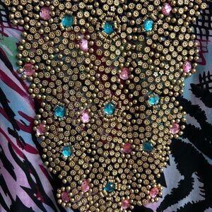 Stand out in this stunning multicolor dress featuring intricate beadwork. Mermaid style with flounced hem and peplum waist. No size or tag but fits a 12 to 14. Feel and look exquisite and exotic. Perfect for a formal occasion . You’ll look dazzling. Wear it on a cruise and some and take some photosThis dress will give you curves.