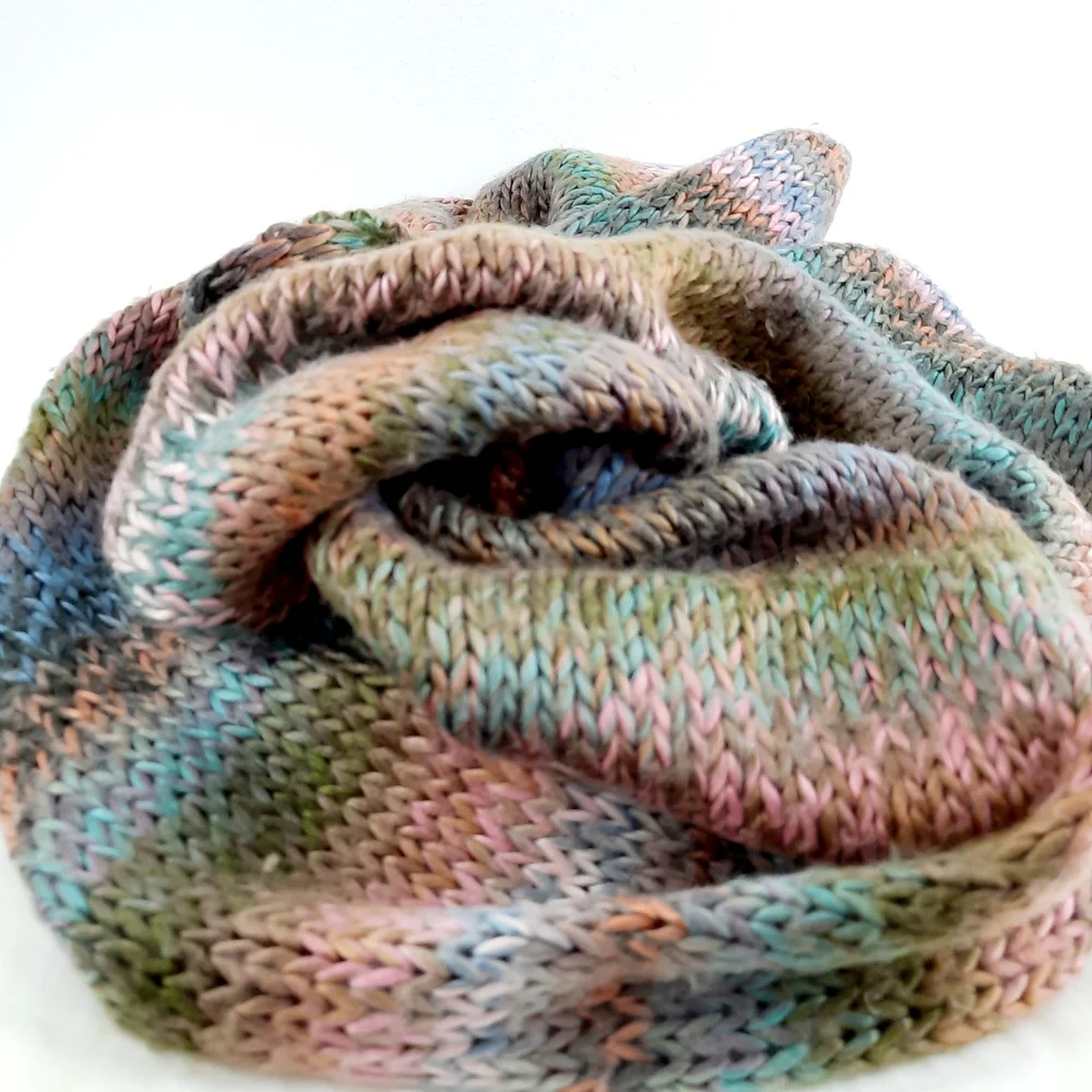 Cozy multicolor knit scarf. Perfect for chilly days.
