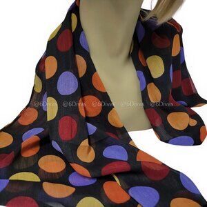 Multicolor Large Polka Dots on Black Background Fashion Scarf