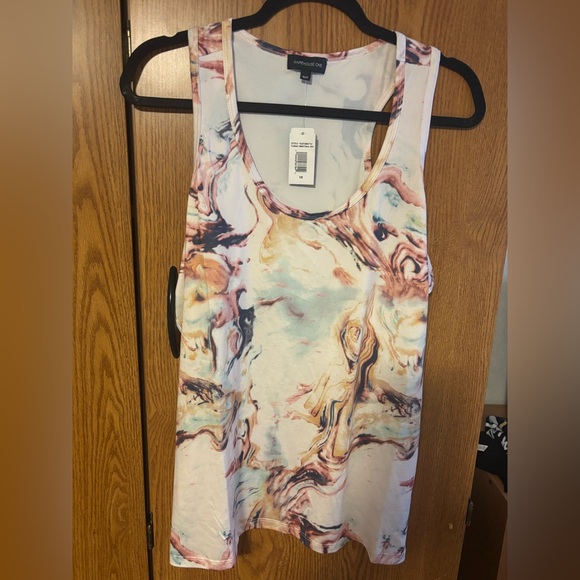 Stylish tank top with a vibrant marble pattern. Ideal for casual outings.