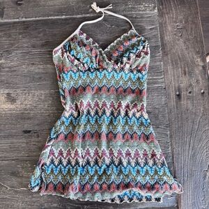 Multicolor Pattern Halter Top