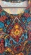 This vibrant multicolor patterned dress is perfect for any occasion. The intricate design features a blend of blue, red, and black, creating a stunning look. Ideal for adding a pop of color to your wardrobe.XL size. But it’s will fit Large nicely with some room. Material is lightweight. Pit to pit 21 inches. Length 38,5 inches.