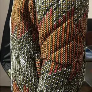 Stylish and vibrant, this multicolor patterned men's jacket is perfect for adding a pop of color to your wardrobe. Ideal for casual outings, it combines comfort with a bold design. Men’s US medium, EU large.