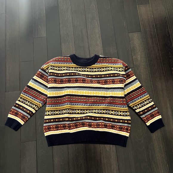 Stay warm and stylish with this multicolor patterned sweater. Perfect for any casual outing.