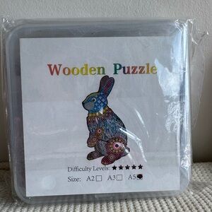 Intricate wooden puzzle featuring a multicolor rabbit design. Ideal for puzzle lovers.