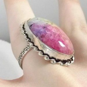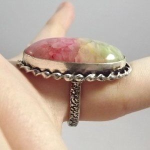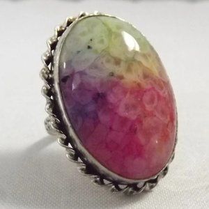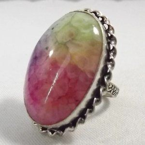 Multi-color Rainbow Solar Quartz 925 Sterling Silver Statement Ring, Size 8.5