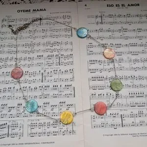 Elegant multicolor necklace perfect for adding a pop of color to any outfit. Features vibrant hues of blue, pink, yellow, and green.
