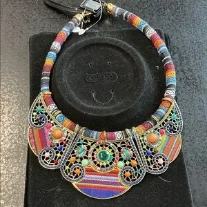 Vibrant multicolor statement necklace with intricate design. Perfect for adding a pop of color to any outfit.