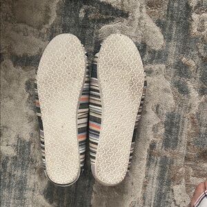 Vibrant slip-ons with multicolor stripes. Comfortable and stylish design.