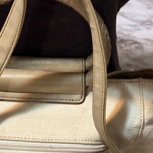 Light stains on bag and pen stains on inside lining of bag (see photos) stains may possibly be removed with stain remover/treatment.