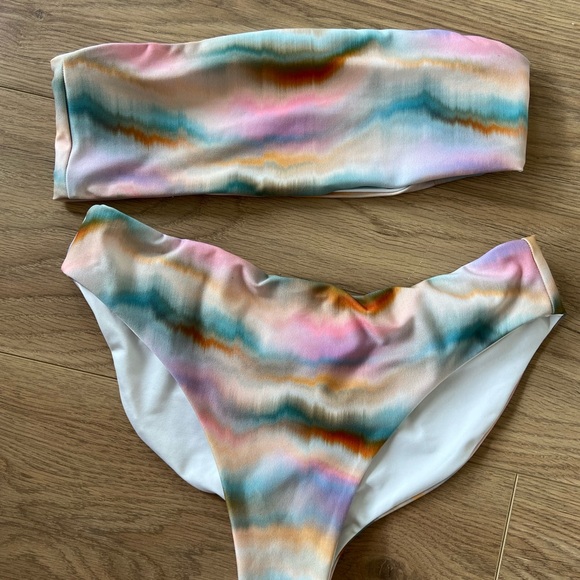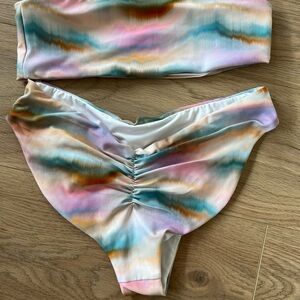 Dive into summer with this vibrant multicolor tie-dye bikini set. Perfect for beach days and poolside lounging.