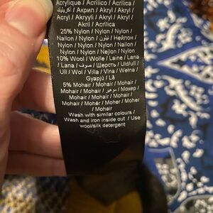 Stay cozy and stylish with this multicolor cowl neck sweater. Featuring a blend of blue, brown, and black, it's perfect for any occasion. Pit to pit is 20