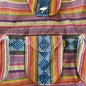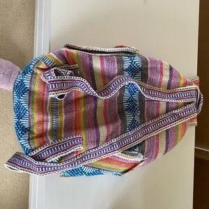 #BohoStyle #FestivalBackpack #BajaBag #Handwoven #BeachStyle #SurfVibes #RainbowStripes #Y2KStyle #EthnicInspired #UnisexFashion