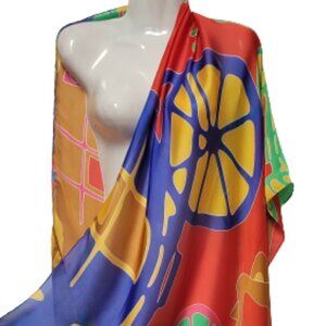 Amazing spectrum of Colours- deep carmine pink, cobalt blue, muted greens, pumpkin gold , sand and chili pepper reds.