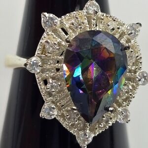 Multicolored and Clear Rhinestone Ring 925 Silver Plated Size 9 Women Jewelry