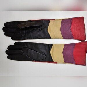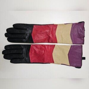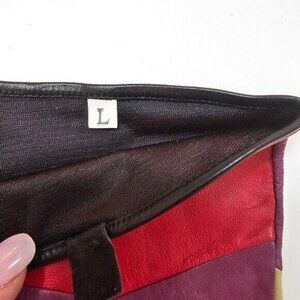 These durable real leather gloves are designed for outdoor featuring a protective design with a black palm and red wrist area. They offer both style and functionality.
