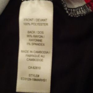 Ricki's top - multicolored front (black, royal blue, red, and grey) - back is entirely black. Can I compare a top to a mullet? Business in front, party in back? The front of this top is great for business casual wear but the comfort of the style and material (especially the t-shirt quality of the back) make you feel like you left your jammies on!