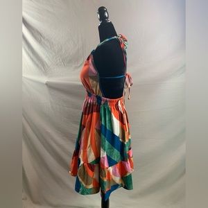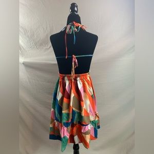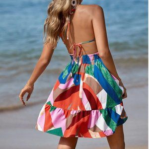 Multicolour Backless Ruffle Hem Halter Dress