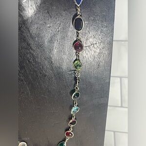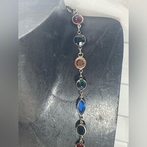 Multicolour Crystal Semi Precious Stone Glass Vintage Silver Unmarked Necklace