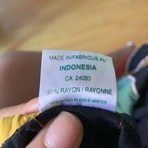 Funky colours, patterns and shapes on a straight cut dress with a saucy slit up the leg.
