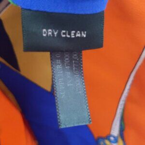 This is a Ralph Lauren Multicolour Blouse that is full sleeve and cinches with a belt. It is a size L and is made of 100% Silk. It is dry clean recommended.