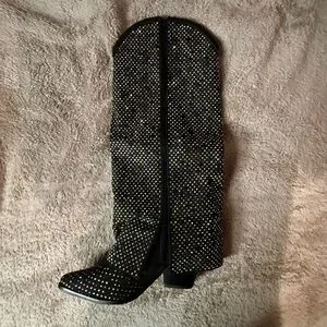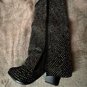 Step out in style with these elegant black studded boots. Perfect for concerts/festivals, these boots add a touch of glamour to your outfit.