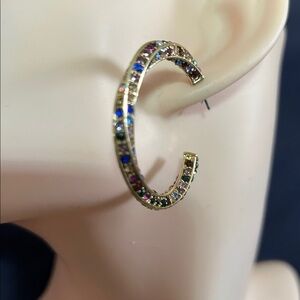 Gold tone and multicolour rhinestones hoops. Multicolour. 1.5”. New