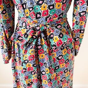 Multicolour Vintage Liz Claiborne Midi Wrap Dress Size Medium Modest Dopamine