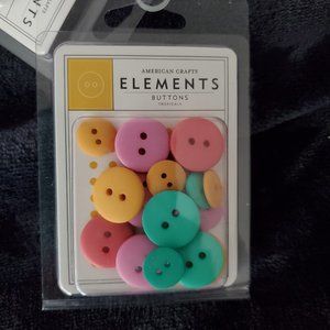 Great set of 3 multi-coloured buttons by Elements. Each pkg has its own distinct set of colours and sizes. One pkg contains a set of lovely black glitter buttons too.