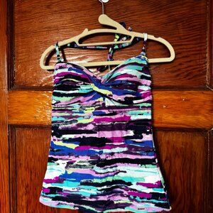 Multicoloured Firefly tankini top - size M, blue, purple, pink, and green.