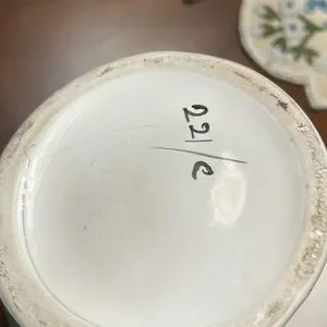 Checkout this beautiful Vase set I brought them separately but they work well together the basin is made in Japan and the vase has 221/C written on the bottom see attached picture