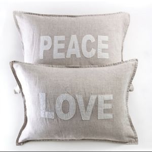 - Both Grey/Beige Pillow Shams that came in the Spring 2023 box. One sham says "Peace", one says "Love".